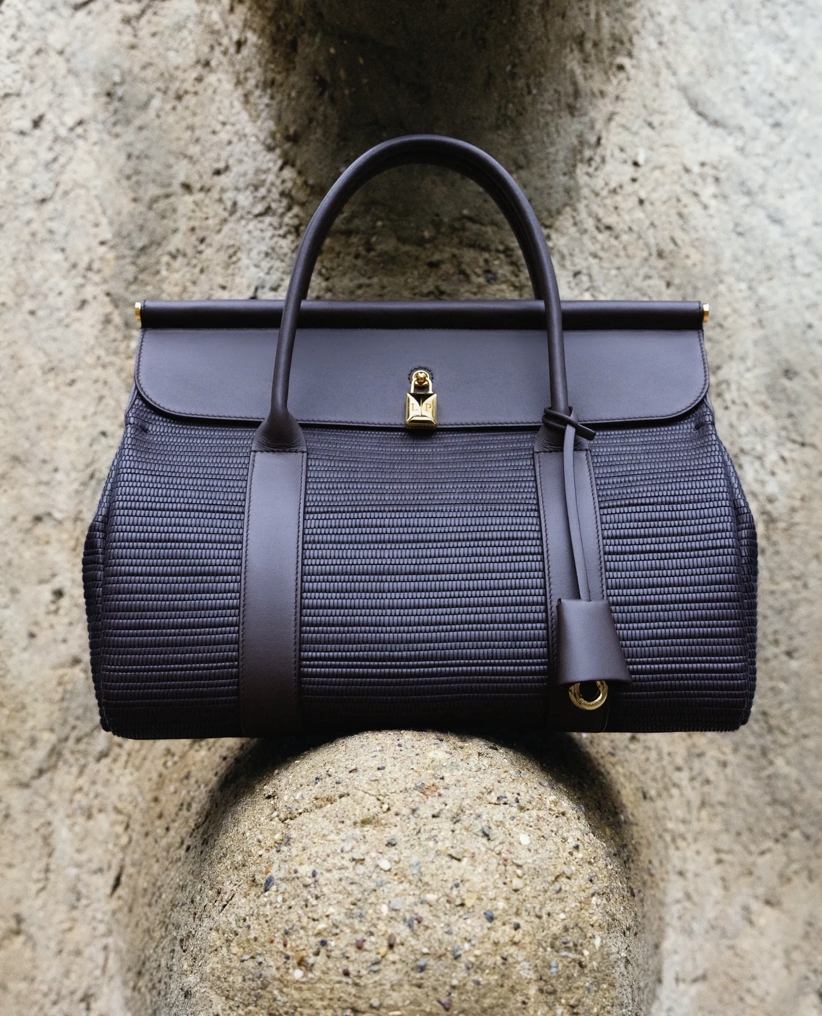 La Loom Bag fa la sua prima apparizione nella collezione SS24 di Loro Piana, prendendo il nome dal telaio, lo strumento attraverso cui i fili si intrecciano per dare vita ai tessuti. Un riferimento tutt’altro che casuale, che rimanda direttamente alla tradizione tessile della maison e al suo approccio al design, sempre guidato dalla materia.
