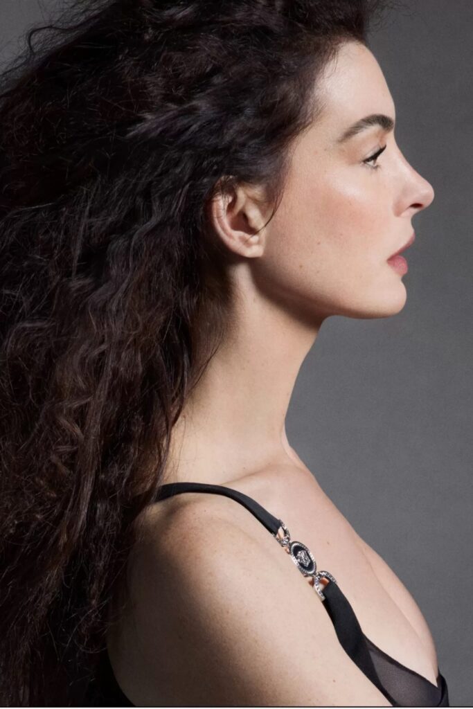 I capi, dai completi sartoriali aderenti agli abiti da sera scolpiti come una seconda pelle, sono una dichiarazione di intenti. E chi meglio della protagonista de Il diavolo veste Prada per interpretare questo messaggio? “Versace è molto più di stampe brillanti, sartoria potente e un’eredità iconica: è un sogno che si avvera, un invito ad andare oltre l’ordinario e vivere come se il quotidiano fosse straordinario,” ha dichiarato Hathaway.