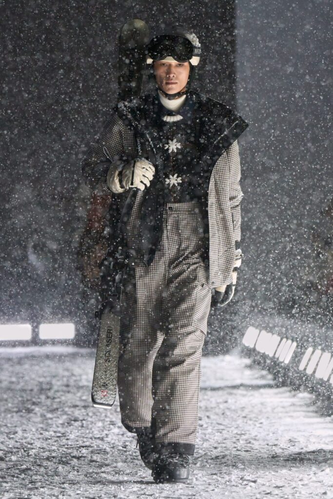 È stata una vera rivoluzione nell’abbigliamento invernale. Con materiali inaspettati come denim e tela, uniti a lana pied-de-poule e bouclé, Moncler Grenoble ha riscritto le regole della moda tecnica. Tute da sci con intarsia sofisticate, parka felpati e maglieria strutturata hanno dimostrato che la funzionalità può andare di pari passo con l’eleganza. Degna di nota è stata la collaborazione con Shaun White, che ha firmato una tavola da snowboard ad alte prestazioni, celebrando il legame profondo tra il marchio e gli sport invernali.