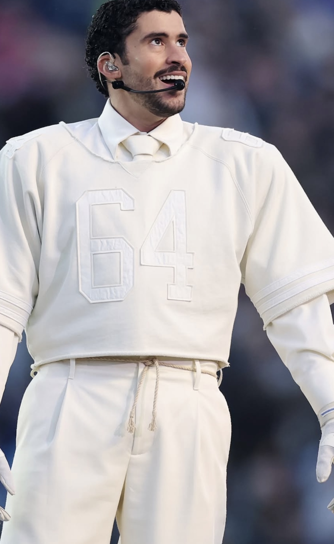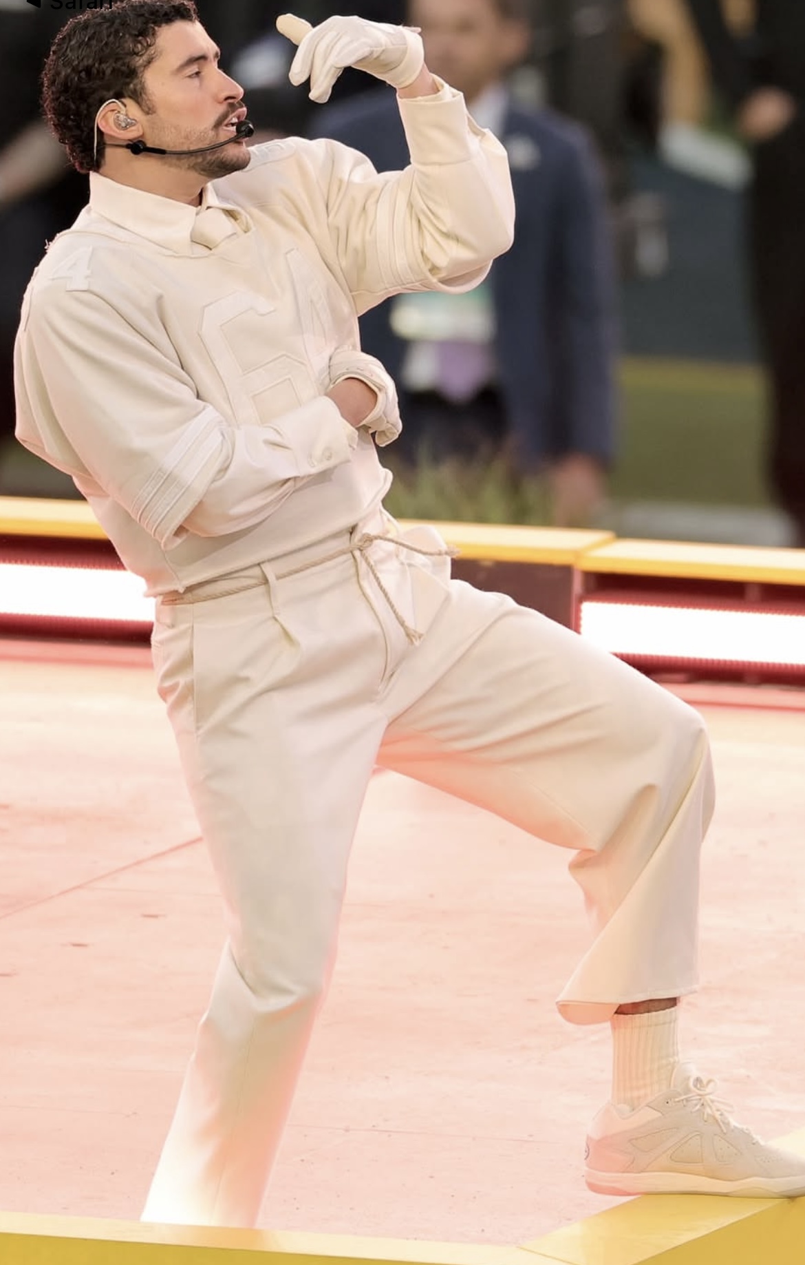 Durante l’halftime show del Super Bowl, Bad Bunny ha trasformato uno dei palcoscenici più osservati degli Stati Uniti in una piattaforma di identità culturale. Davanti a milioni di spettatori, l’artista portoricano non ha offerto soltanto una performance carica di energia e radici latine, ma ha reso l’abbigliamento parte integrante del proprio racconto. In una trasmissione di portata globale, ogni dettaglio è stato pensato per amplificare chi è e da dove viene. Il look non è stato un complemento, ma uno strumento narrativo all’interno di uno spettacolo destinato a rimanere nella memoria collettiva.
