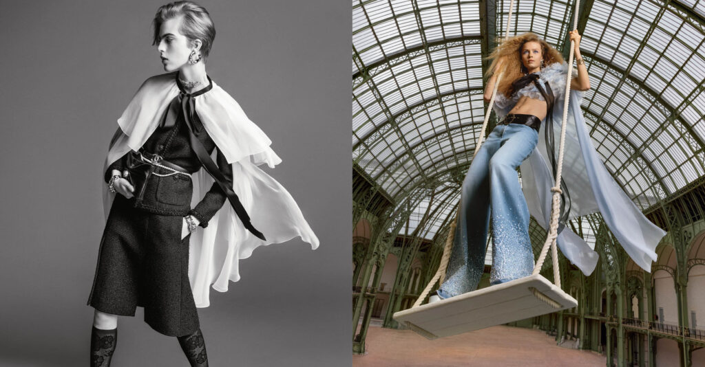CHANEL torna a incantare con la campagna della collezione Primavera-Estate 2025 Ready-to-Wear, celebrando il legame indissolubile tra la Maison e il Grand Palais. Questo spazio iconico, che ha ospitato alcune delle sfilate più memorabili della storia del brand, diventa il palcoscenico perfetto per esaltare la libertà e il movimento, temi chiave della nuova stagione. Sotto l’obiettivo di Inez & Vinoodh, le modelle Amar Akway, Libby Bennett, Ella Mccutcheon e Nigina Sharipova incarnano con grazia e forza i codici intramontabili di CHANEL.