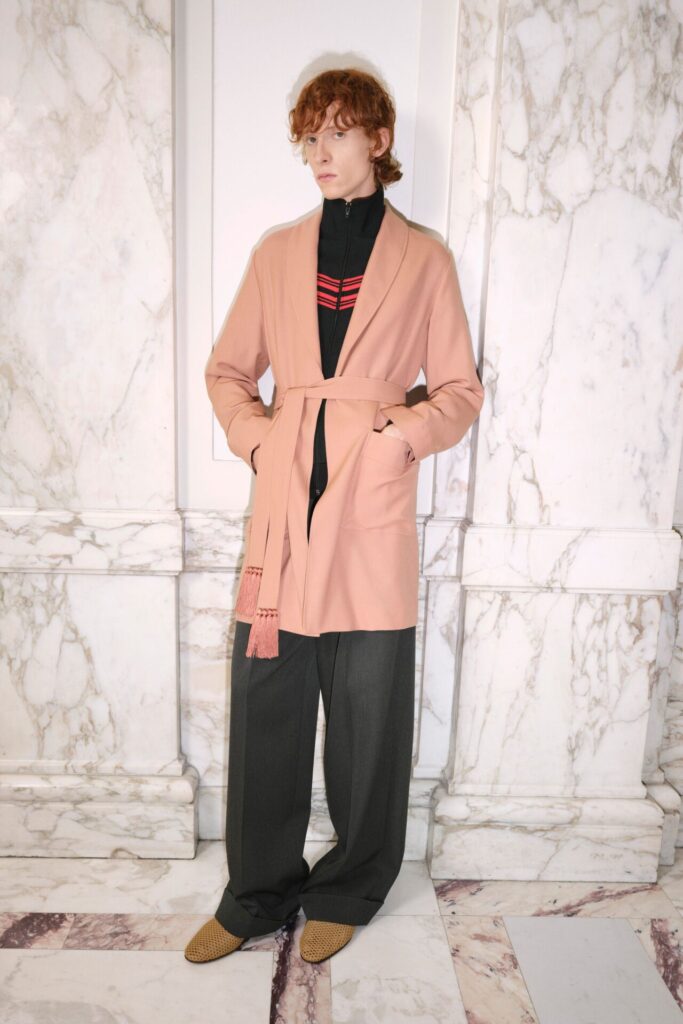 Nel womenswear si percepisce un cambiamento evidente. C’è maggiore controllo e una volontà più concreta di indossabilità. La collezione sembra pensata affinché i capi convivano tra loro, non per competere per l’attenzione. Tutto appare più armonico e meno teatrale. Nei look serali, tulle, ricami e bagliori ricordano che Valentino continua a dominare emozione e tecnica. Eppure nulla risulta eccessivo: ogni dettaglio è presente perché aggiunge valore, non perché eccede.