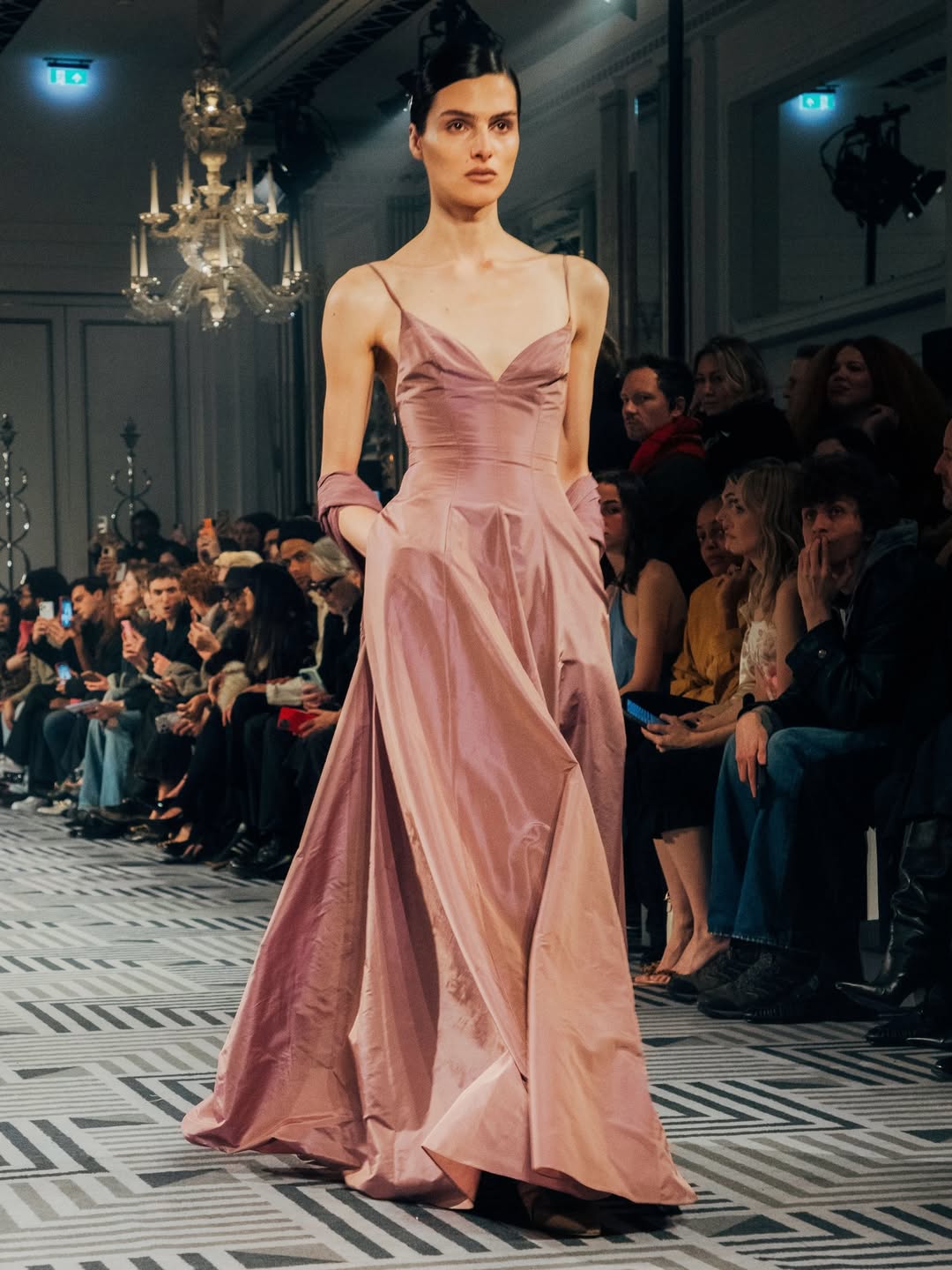 Nel giorno conclusivo della London Fashion Week, Conner Ives ha presentato una sfilata segnata da glamour e nostalgia, ma attraversata da uno sguardo decisamente contemporaneo. Trenta look hanno costruito un racconto in cui la memoria diventa materia, qualcosa di tangibile e indossabile. La ballroom dell’iconico Claridge’s ha offerto il contesto ideale: classico, elegante, leggermente teatrale, perfettamente in sintonia con una proposta che mescola suggestioni vintage e sensibilità attuale.