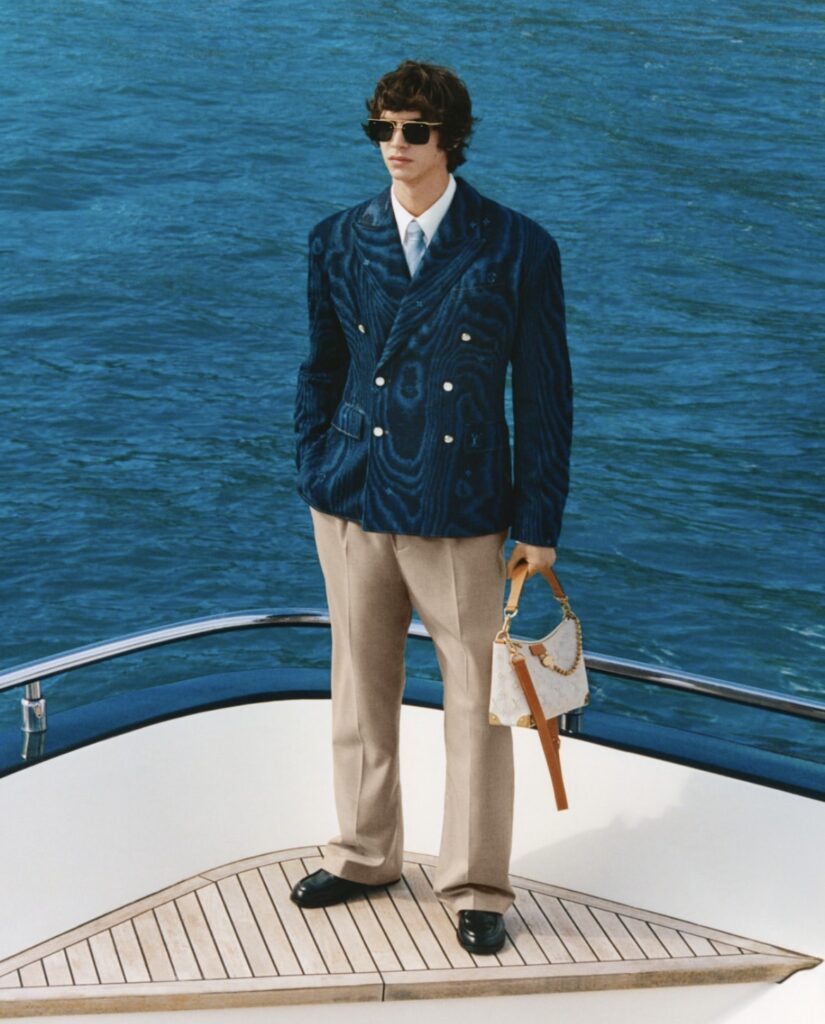 Nella visione del Direttore Creativo, il viaggio è tanto importante quanto la destinazione: vestirsi con eleganza durante una traversata in nave era parte integrante dell’esperienza. In questo contesto, Louis Vuitton costruisce una narrazione di sofisticata rilassatezza, fondendo nostalgia e modernità.