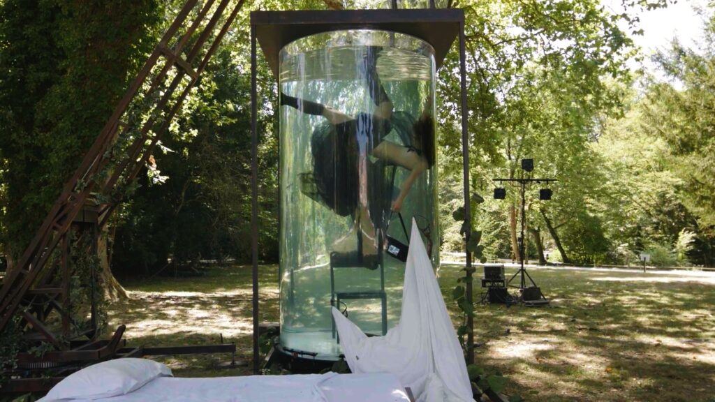 David Koma e Yoann Bourgeois hanno rivoluzionato il panorama delle campagne di moda con una proposta visiva che rompe gli schemi. Ispirati alla tragica figura di Ofelia dell’Amleto, hanno dato vita a una serie di video che esplorano la sottile linea tra il mondo fisico e quello etereo. Con i giardini del Château du Clos Lucé come sfondo, la scenografia, composta da un letto sospeso e un acquario che simula una “macchina dei sogni”, proietta gli accessori di Koma in un ambiente tanto surreale quanto ipnotico.