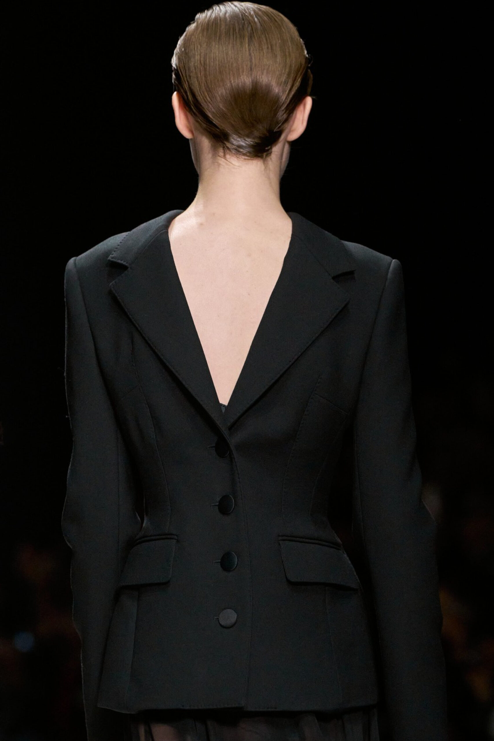Il dialogo più interessante è quello tra struttura e intimità: giacche che si aprono sul pizzo, corpi che alternano disciplina e fragilità, come se il look dicesse: la forza può anche essere trasparente.