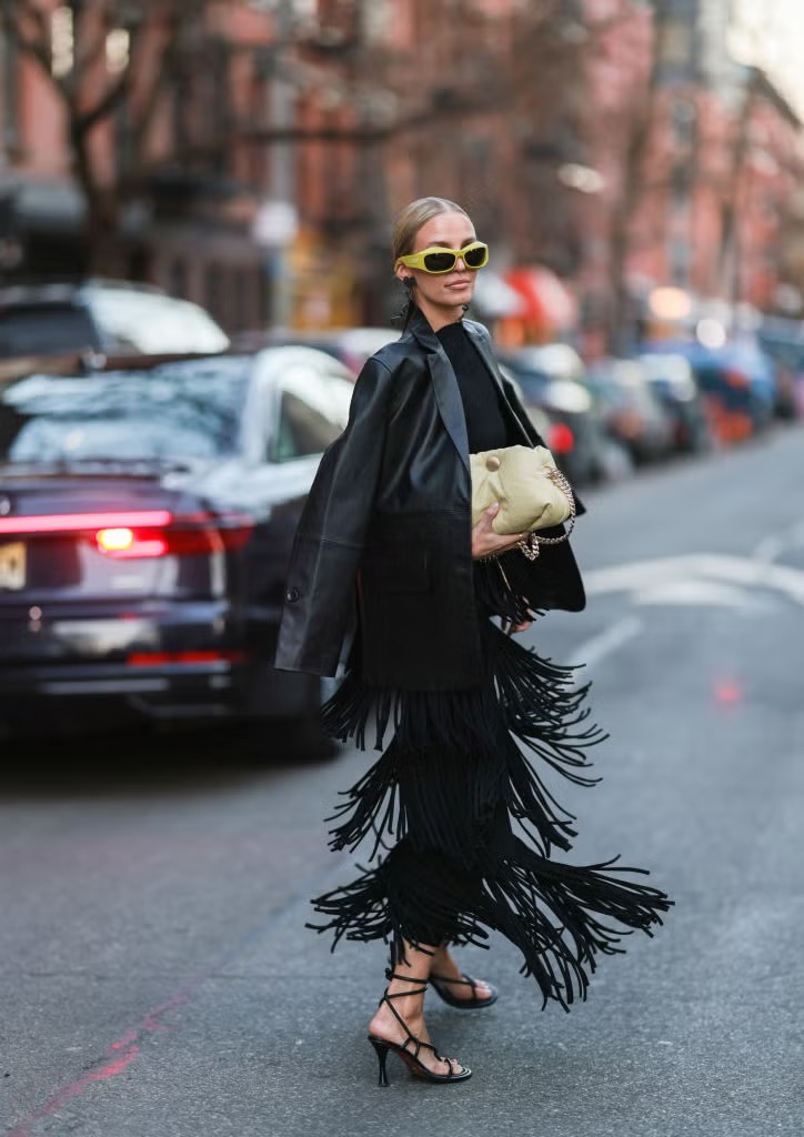 Molto legata al boho chic e allo spirito western, questa tendenza torna a emergere e si inserisce con naturalezza nella moda contemporanea. Il fringe arriva questa stagione su ogni tipo di capo: da bluse, giacche e top, fino a foulard, stivali e borse. Le frange conquistano sia le passerelle sia lo street style, portando un nuovo dinamismo allo styling del 2026. Una proposta che probabilmente esiste già in qualche capo del tuo guardaroba, perfetta per dare ai look un’aria più fluida ed espressiva.