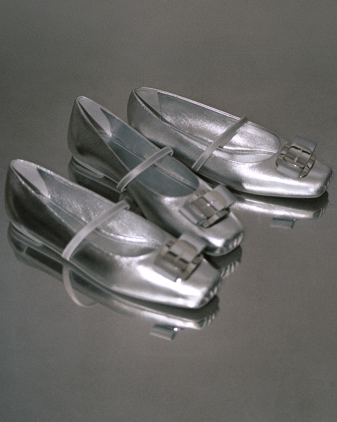 Lo stile con la nuova placca Vara è presente anche in una forma appuntita ed è disponibile in nero, mascarpone, aqua e light camel. Infine, ispirata al modello Varina, Ferragamo presenta una ballerina a forma di V con fiocco Vara in materiali e colori contrastanti: fiocco rosso su nappa mascarpone, fiocco nude su denim e due versioni in velluto liscio tono su tono in rosa e blu.