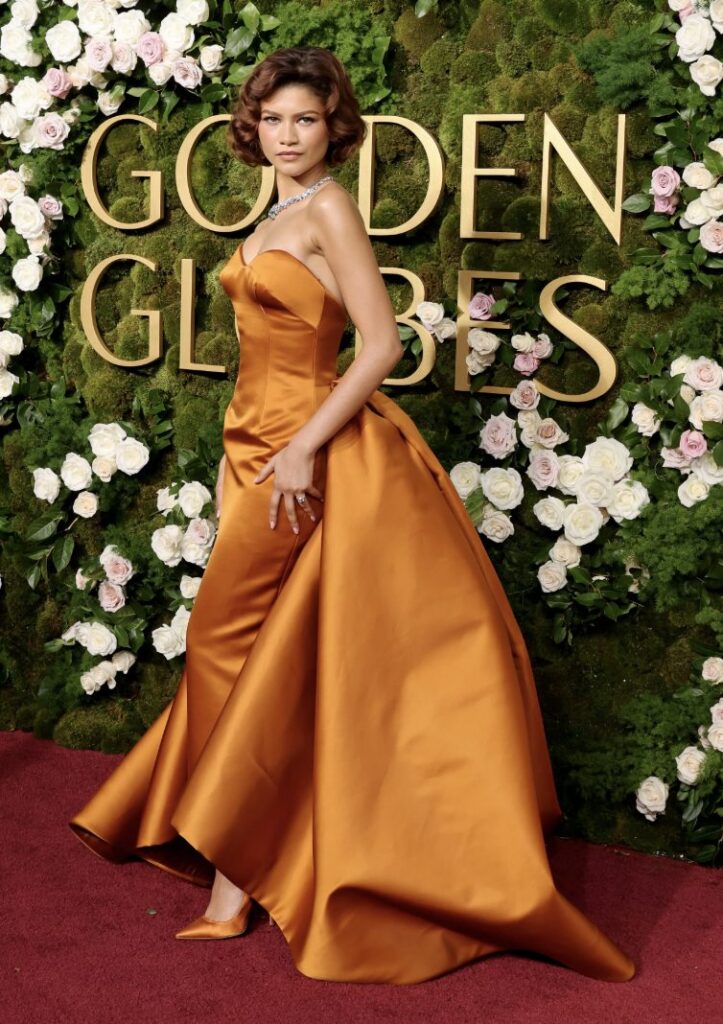 In primo luogo, Zendaya si è incoronata come la meglio vestita, consolidando la sua reputazione di icona di moda in eventi di questo tipo. L’attrice ha scelto un abito color ambra di Louis Vuitton con una silhouette strutturata e un drammatico strascico. Come tocco finale, una splendida collana di diamanti di Bvlgari ha aggiunto ancora più glamour al suo look incredibile.