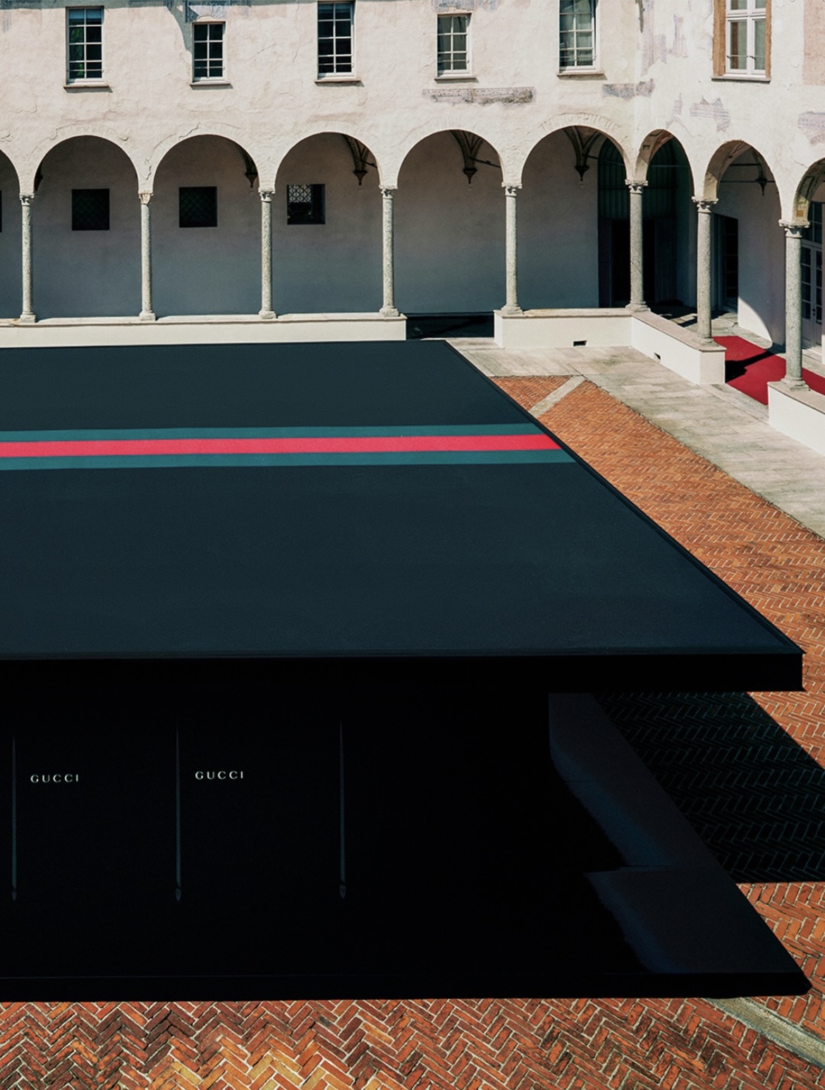 Nel contesto del Fuorisalone 2026 — il circuito di mostre, installazioni e attivazioni che anima Milano durante il Salone del Mobile — Gucci presenta Gucci Memoria, una mostra che ripercorre la propria storia attraverso una messa in scena immersiva. Curata da Demna, l’esposizione si sviluppa nei chiostri di San Simpliciano e propone un percorso che connette le origini fiorentine della maison al suo presente. Più che una retrospettiva, il progetto si configura come una lettura attiva dell’identità del brand, dove ogni spazio diventa parte integrante del racconto.