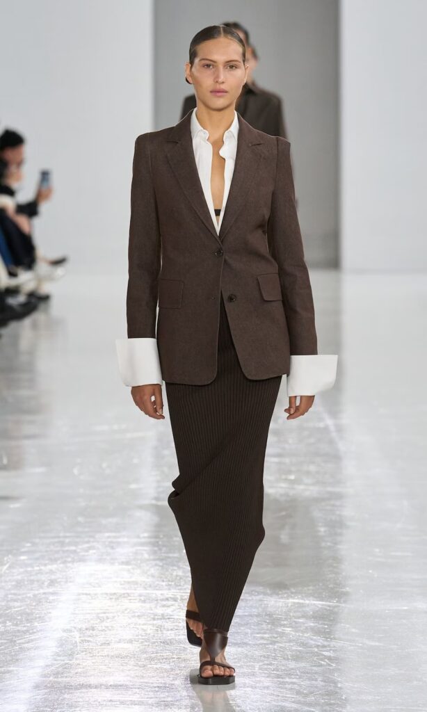 Un chiaro esempio di come il minimalismo continui a reinventarsi è la collezione di Veronica Leoni per Calvin Klein alla scorsa New York Fashion Week, dove ha presentato un’estetica pulita ma potente, con capi che trasudavano forza e carattere, perfetti per diversi scenari.