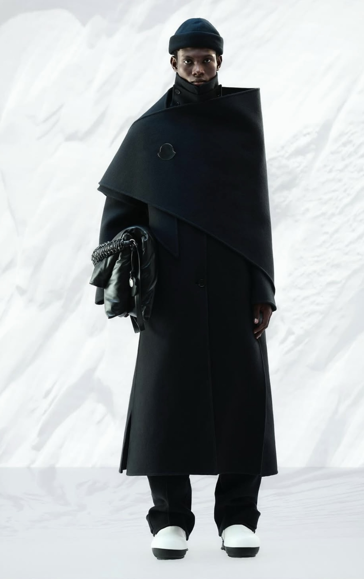 Questo lancio si distingue per la sua capacità di coniugare funzionalità ed estetica essenziale. Le giacche imbottite presentano un volume controllato, mai eccessivo, mentre i cappotti in doppia lana offrono struttura senza rinunciare alla morbidezza. La palette rimane sobria: panna, grigi e blu profondi, tonalità che permettono a ogni capo di adattarsi con naturalezza a stili personali molto diversi. Anche i dettagli metallici — come la spilla che sostituisce il logo tradizionale — aggiungono un gesto sottile che rafforza il carattere contemporaneo della collaborazione.