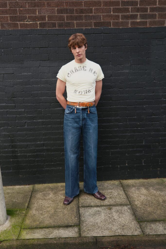 La passione di Koma per il mondo dei motori si riflette in polo in maglia con stampe a scacchiera, giacche di pelle invecchiata con imbottiture protettive e t-shirt con immagini di auto in movimento. Questi capi puntano ad attirare sia l’uomo attento alla moda sia chi desidera esplorare oltre la propria zona di comfort. Koma sottolinea l’importanza di bilanciare fantasia e funzionalità nel design maschile, presentando pantaloni con dettagli in cristallo, denim effetto velluto, cravatte con frange e cinture rimovibili che mantengono un equilibrio tra audacia e praticità.