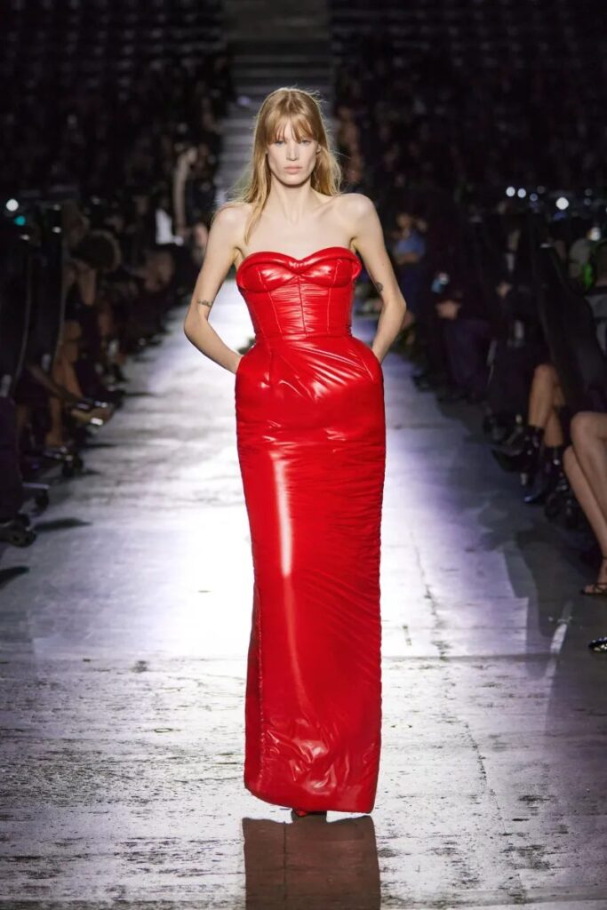 Anche la sperimentazione tessile gioca un ruolo chiave in questa proposta. Ricami di perle replicano il rumore statico degli schermi, mentre pattern ASCII trasformano il codice in fiori pixelati. Il riferimento tecnologico si estende anche agli accessori: la borsa Tamagotchi Swipe e gli occhiali in edizione limitata nati dalla collaborazione con Ray-Ban Meta, potenziati con intelligenza artificiale. Tuttavia, uno degli elementi più discussi sono stati i vestiti-sacchi a pelo con dettagli di corsetto integrati, un omaggio a quelle notti in cui i gamer sacrificavano il sonno per “un’altra partita”. Con questa collezione, Coperni riesce a portare la nostalgia digitale nel territorio della moda, dimostrando che la cultura tecnologica non si vive solo attraverso gli schermi, ma può anche materializzarsi in capi iconici da indossare.