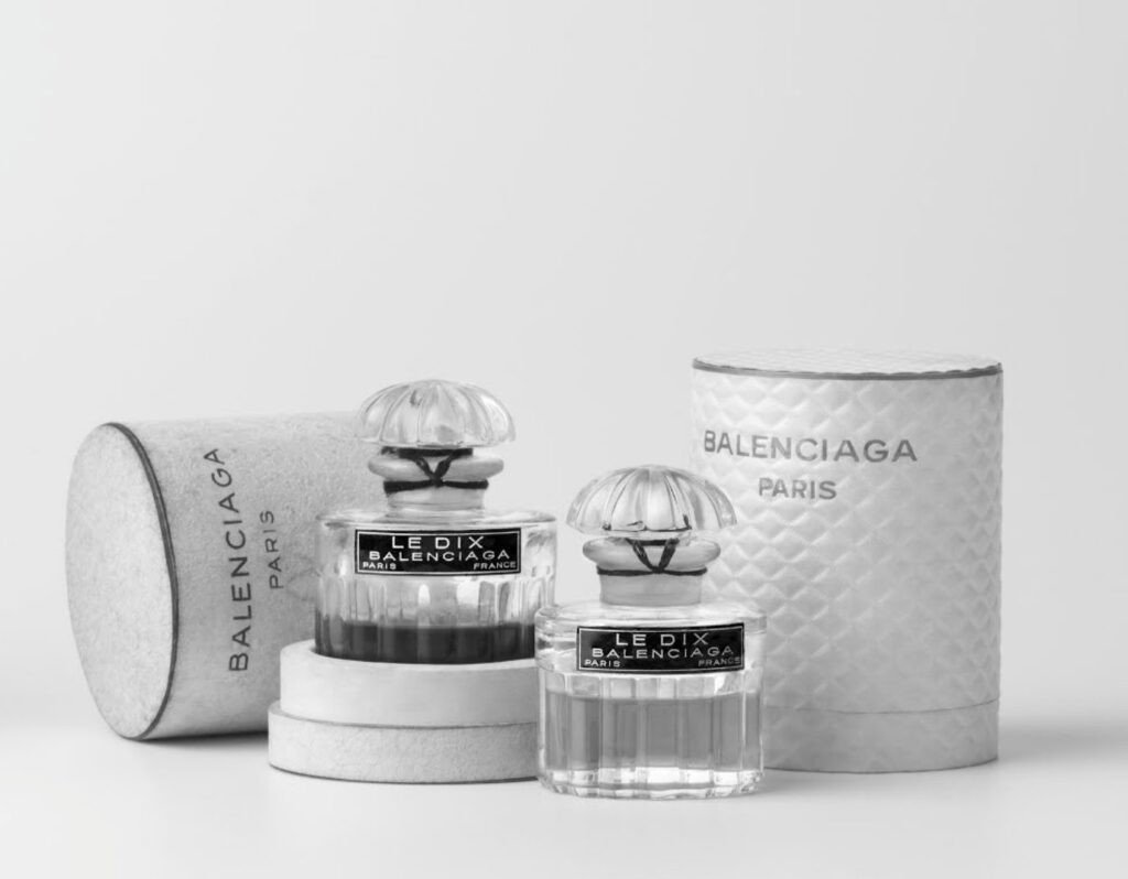 Il legame di Balenciaga con la bellezza non è nuovo. Sebbene il marchio sia celebre per il suo dominio nella moda, negli anni ’50 e ’60 ha mosso i primi passi nel mercato cosmetico. Nel 1957, Cristóbal Balenciaga, fondatore della maison, lanciò la sua prima fragranza: Le Dix, un profumo che divenne rapidamente un’icona nel mondo della profumeria. La fragranza, creata dal rinomato profumiere Jean Carles, rappresentava una dimostrazione della visione dettagliata e avanguardista di Balenciaga. Fu presentata in un’elegante bottiglia di cristallo intagliato, che evocava la stessa raffinatezza delle sue collezioni di alta moda.