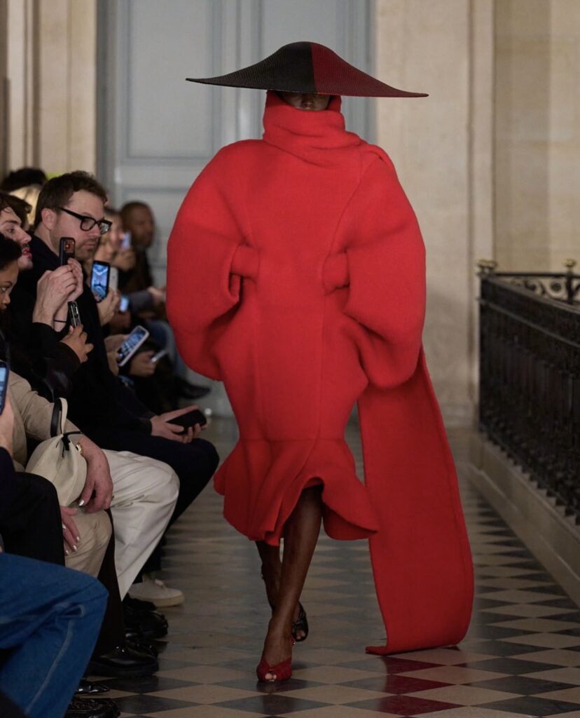 Uno dei momenti più significativi dello show è stato il riferimento alla nonna di Simon Porte Jacquemus, elevata a fonte d’ispirazione e simbolica ambasciatrice della maison. La sua presenza non ha funzionato come semplice aneddoto, ma come una dichiarazione chiara: in un’industria spesso ossessionata dalla giovinezza, anche l’età e le origini hanno valore. A questo gesto intimo si è affiancata una citazione culturale fondamentale, quella di Paloma Picasso, la cui immagine di donna forte e sensuale emerge nella collezione, in particolare nella sartoria dalle linee nette e dalle silhouette definite. Due fonti diverse — una personale, l’altra artistica — che si incontrano su una stessa passerella.
