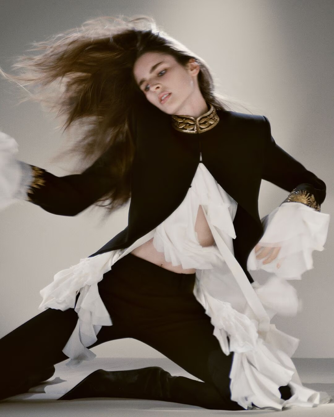 “La collezione si è ispirata all’autoespressione incrollabile di pensatori indipendenti, esplorando la tensione tra tradizione e trasgressione. Il loro spirito progressista è oggi più attuale che mai, intrinseco alle questioni moderne di carattere, identità, idealismo e genere.”