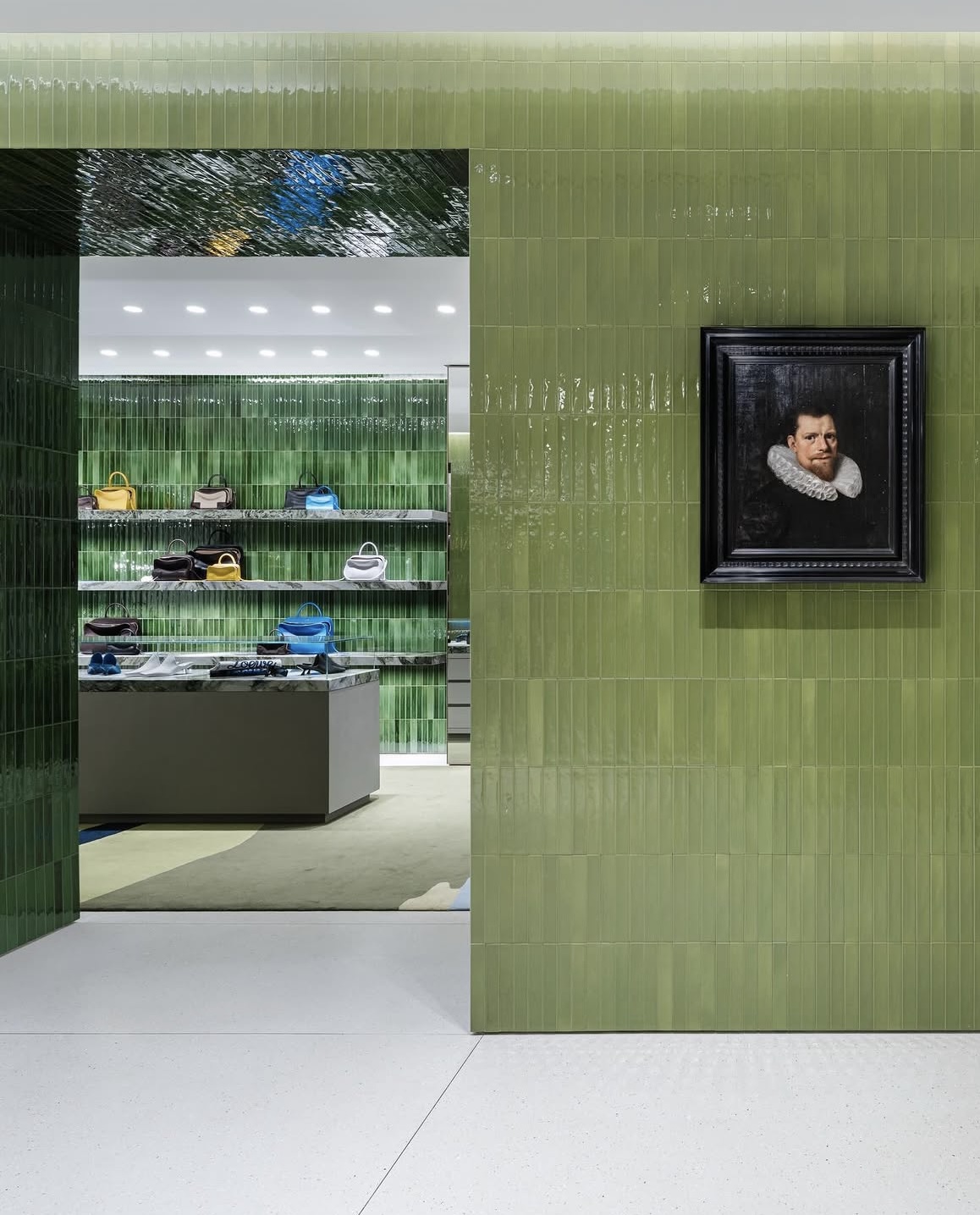 Situata in una delle vie più emblematiche della città, la boutique si sviluppa su due livelli, dove ogni ambiente è pensato in chiave sensoriale. Pareti rivestite in ceramica, tappeti in lana e una palette materica ricca di texture costruiscono un percorso che ricorda più una galleria abitabile che un punto vendita classico. In questo contesto, le collezioni uomo e donna convivono con oggetti di design e pezzi unici, dando forma a un universo coerente dove dettaglio e materialità diventano protagonisti.