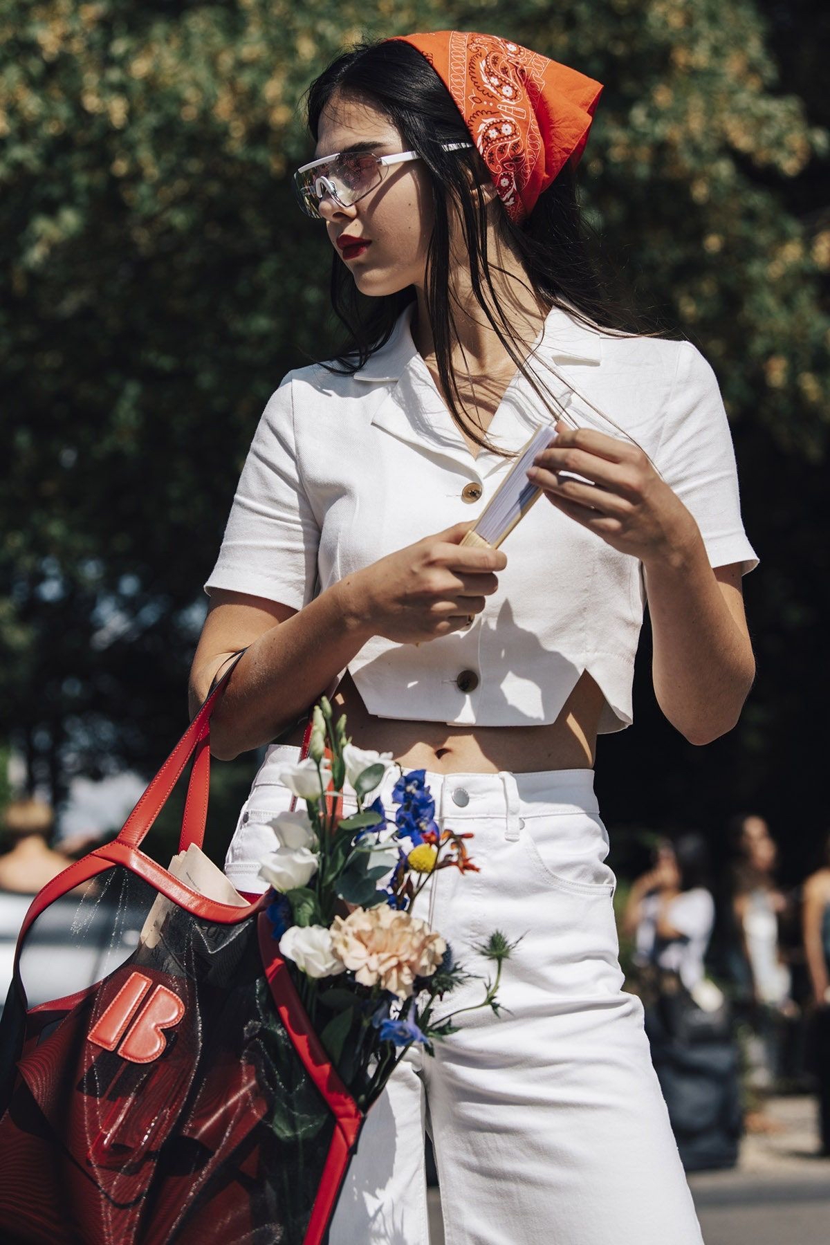 Il foulard si è guadagnato un posto in prima fila nell’estate 2025. Non è solo un accessorio: è l’asso nella manica capace di moltiplicare un look. Portalo tra i capelli, annodalo al collo, stringilo in vita o aggancialo alla borsa; la sua versatilità è ampia quanto la tua immaginazione. Ha attraversato festival e passerelle senza perdere attitudine, apparendo nelle collezioni di Dior, Celine, Chanel e Jacquemus. Per strada, influencer e celebrità lo sfoggiano con la stessa naturalezza di un paio di occhiali da sole, confermando che quest’anno il foulard non è un complemento: è indispensabile.