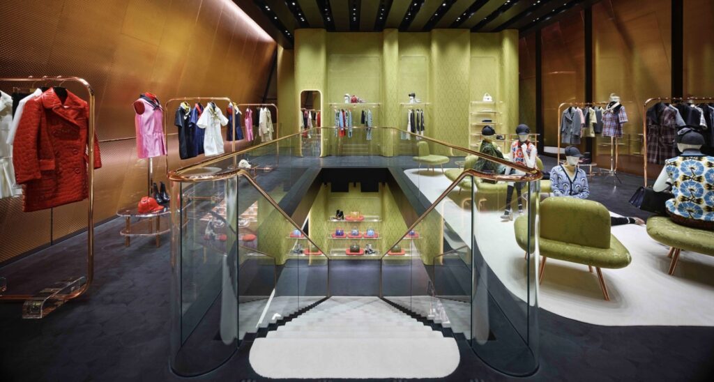 La boutique è un esempio straordinario di come Miu Miu riesca a fondere moda, architettura e minimalismo, offrendo uno spazio che invita alla scoperta e al silenzioso apprezzamento dell’eleganza contemporanea.