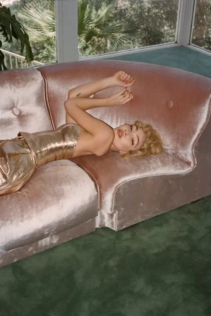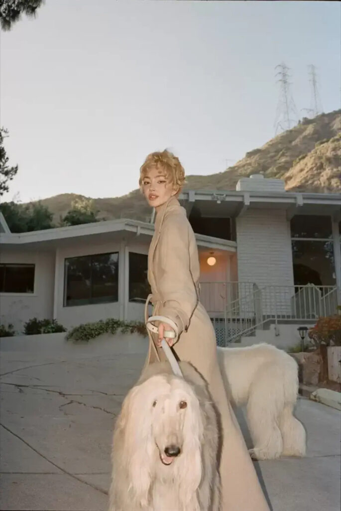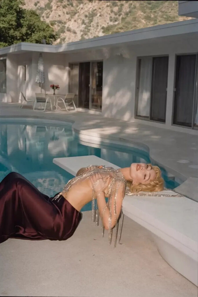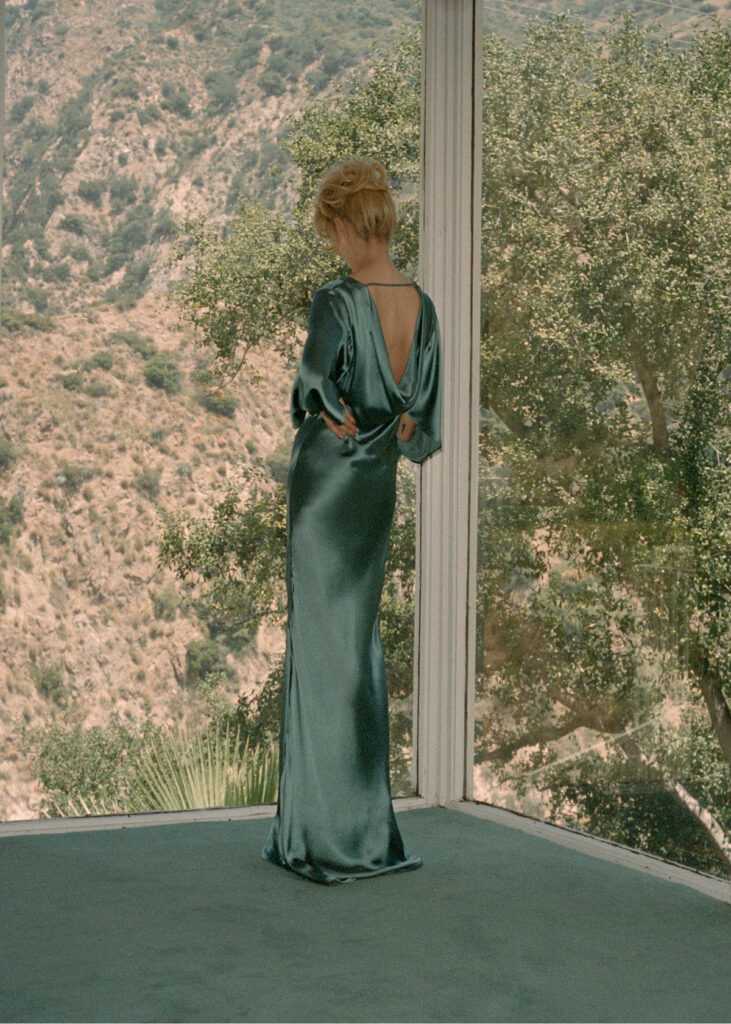 In una tipica villa di Hollywood Hills, con il fascino degli anni ’60-’70, la modella britannica si aggira per le stanze indossando look coordinati di & Other Stories. Spiccano i maxi cappotti di lana in bordeaux e cammello, un completo di pantaloni in pelle dorata senza spalline, un abito di raso tagliato in sbieco color eau de nil, un tailleur taupe con pieghe drappeggiate e spalle poderose, e una collana di frange adornata con cristalli per aggiungere un tocco di glamour hollywoodiano a qualsiasi outfit.
