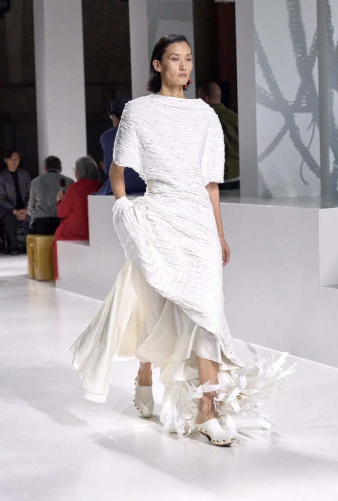 L’arrivo di Louise Trotter in Bottega Veneta ne è la prova. La sua estetica raffinata e la sua maestria artigianale si fondono perfettamente con l’identità della maison. Pur non rinnegando l’era di Matthieu Blazy, il debutto di Trotter ha superato ogni aspettativa, offrendo una collezione coerente e necessaria, capace di trasformare i codici tradizionali in siluette più fluide e contemporanee. Ogni uscita ha dimostrato che il futuro di Bottega nasce dall’intelligenza con cui si manipolano i materiali e si costruisce una nuova eleganza.