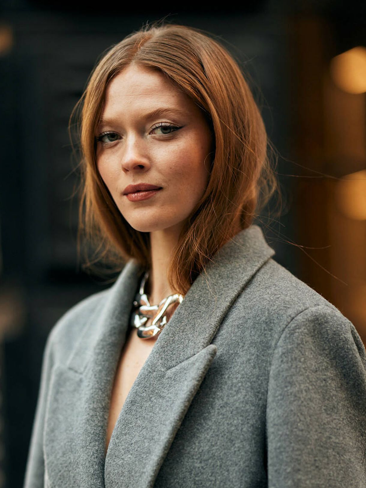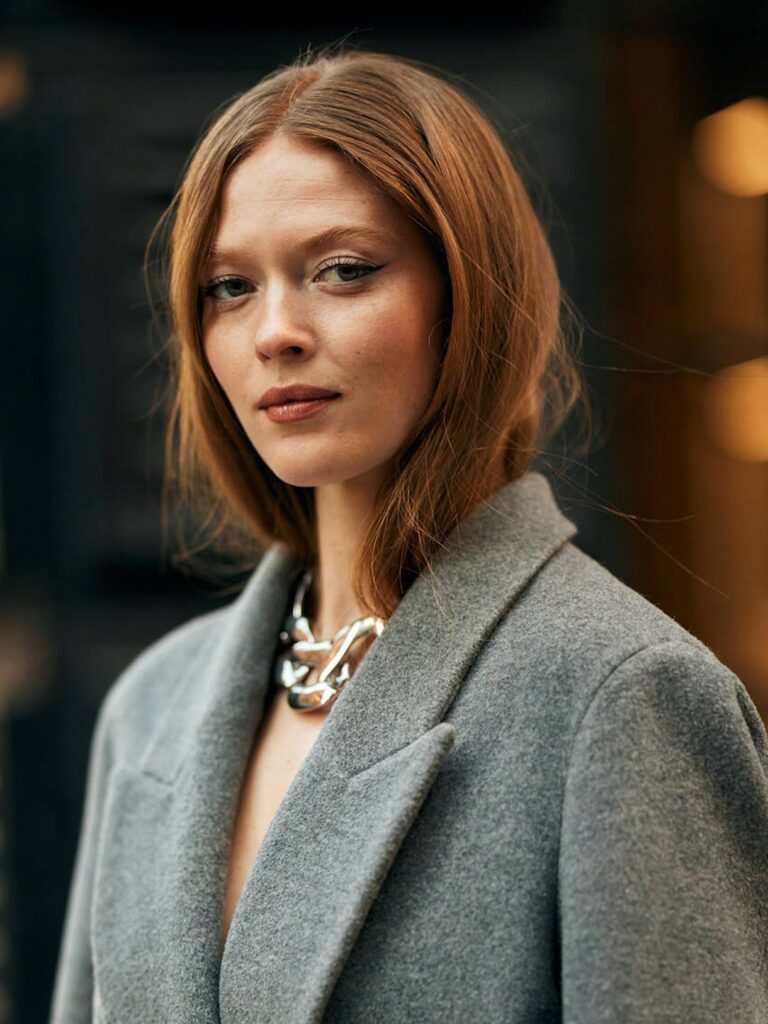 Non è propriamente un look, ma un gesto di stile: infilare i capelli dentro il colletto del cappotto, del maglione o della giacca, lasciando libere solo alcune ciocche.