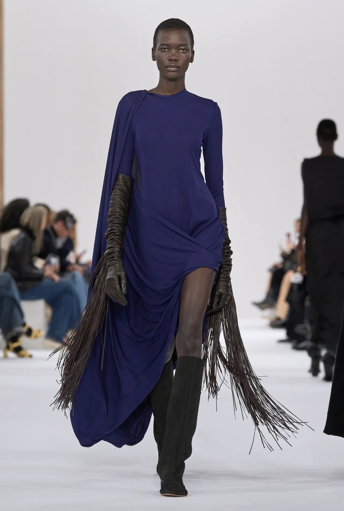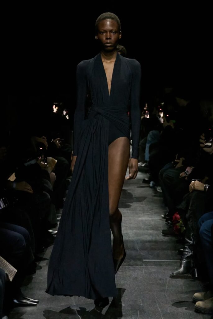Il Capodanno è sempre l’occasione perfetta per vestirsi senza timore e scegliere look capaci di brillare da soli. In questo contesto, paillettes, finiture metalliche e tessuti luminosi restano protagonisti indiscussi. Mini dress o abiti lunghi, completi due pezzi con top statement o pantaloni dritti si ripetono stagione dopo stagione perché funzionano. Maison come Paco Rabanne interpretano al meglio lo spirito festivo, con proposte che giocano con riflessi metallici, trasparenze e silhouette che non passano inosservate. Saint Laurent, invece, propone una visione più notturna ed elegante della luce: abiti neri, scolli profondi e dettagli scintillanti capaci di elevare qualsiasi look senza eccessi. La chiave è scegliere un capo protagonista e lasciare che tutto il resto accompagni.
