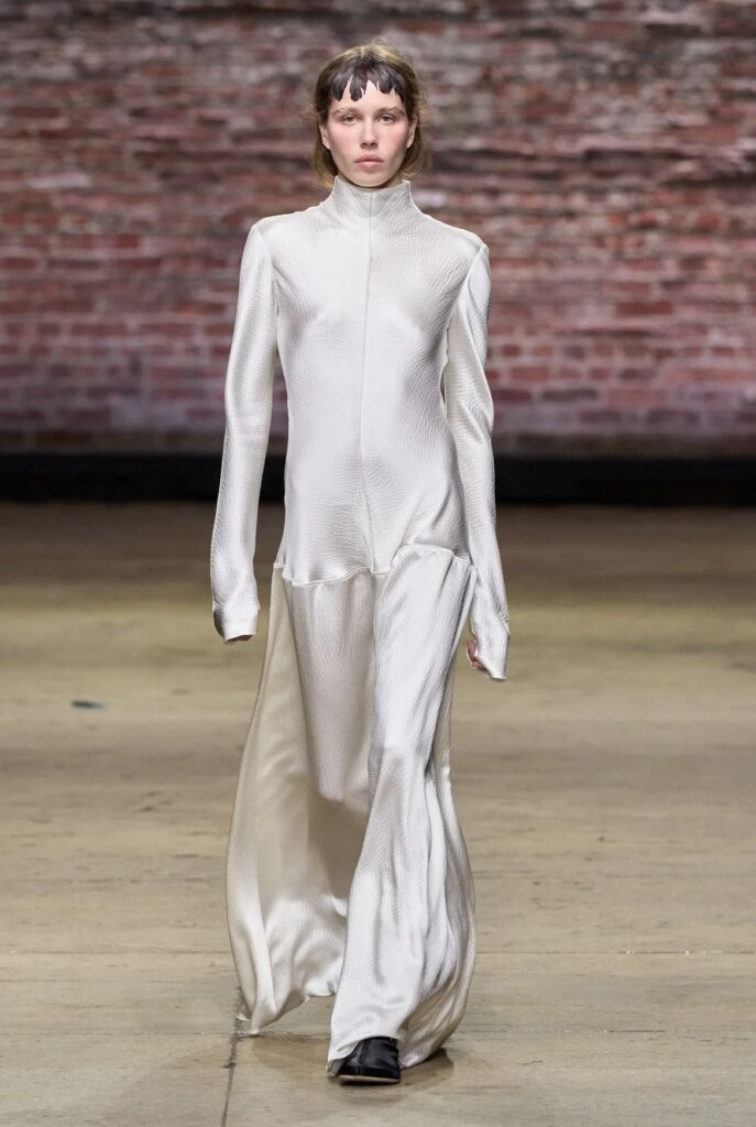 Per chi predilige un’estetica più classica o rilassata, il bianco resta una scelta sicura per accogliere il nuovo anno. Lontano dall’essere monotono, questo colore apre a molte possibilità: da abiti leggeri a completi con pantaloni e bluse in satin dal tocco sofisticato. Un modo per attualizzare il bianco è abbinarlo a lingerie, pizzi o trasparenze delicate, trovando un equilibrio tra raffinatezza e spirito festivo. Si afferma anche un’opzione più bohémien, con abiti fluidi, tessuti morbidi e dettagli artigianali, in linea con l’estetica di maison come Isabel Marant o Chloé, che propongono look eterei ma ugualmente speciali. Sandali delicati, gioielli dorati e mini bag completano l’insieme per chi desidera festeggiare con stile.