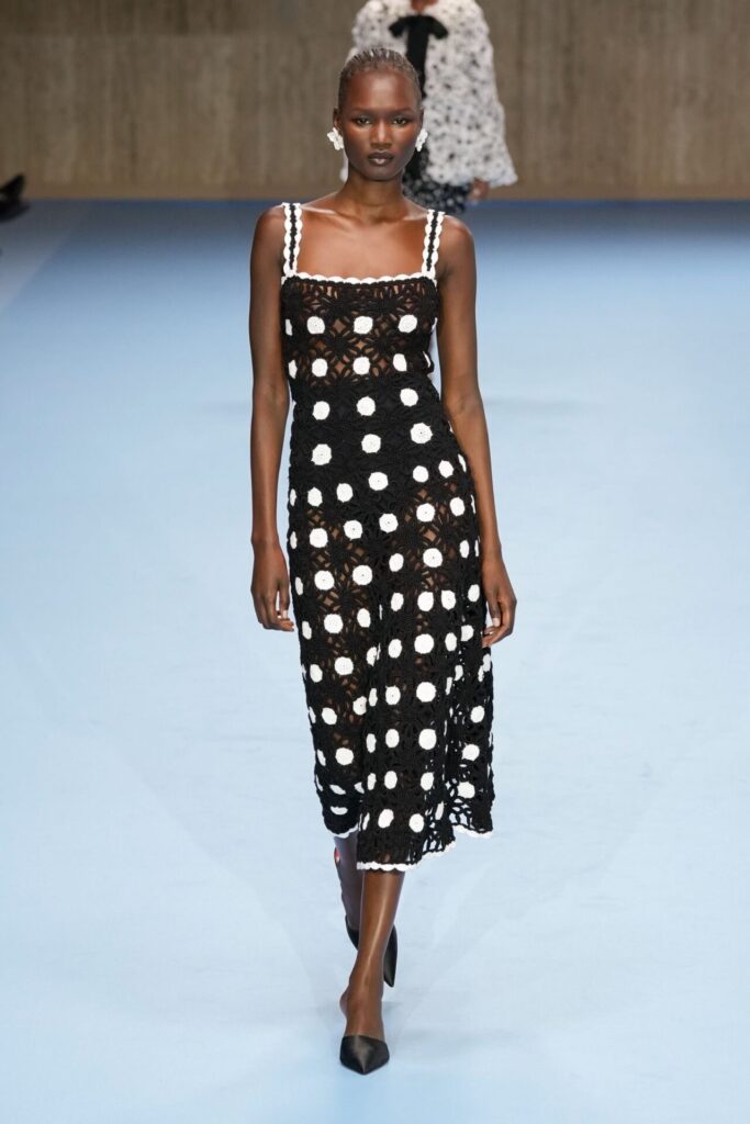 Nel 2025 i designer sono di nuovo caduti sotto il loro incanto. Fendi li ha inseriti nella collezione resort mescolando sofisticatezza e freschezza; Moschino li ha spinti all’estremo con volumi strutturati e abiti in tulle trasparente; Jacquemus li ha proposti in accessori ludici come minibag o kitten heels. Isabel Marant, Altuzarra e Bora Aksu hanno scelto una visione romantica, fatta di trasparenze, strati di tulle e silhouette fluide. Pur riempiendo la passerella di punti, ogni maison ha dato loro un’interpretazione con un DNA distinto.