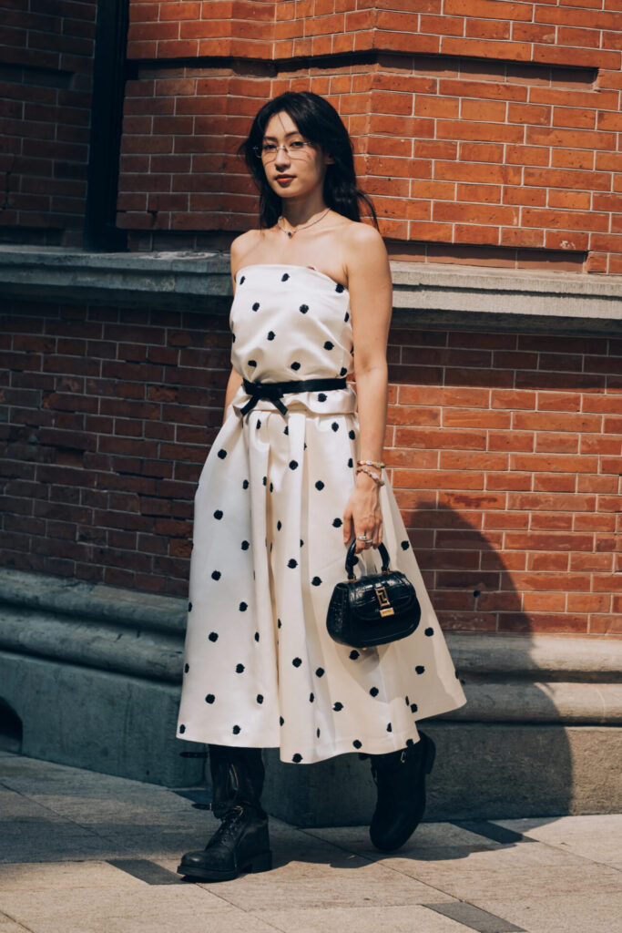 Ciò che affascina è la naturalezza con cui questa stampa si adatta allo stile urbano. Per chi cerca un tocco moderno, la chiave è nel mix: pois con giacche di pelle, jeans rilassati o in versioni grafiche quasi ottiche. Le più audaci osano con il “più è più”, abbinando macro dots a colori vibranti, mentre altre preferiscono il minimalismo sofisticato del bianco e nero su blazer o abiti dalle linee pulite. Anche gli accessori si uniscono alla febbre: foulard, borse e collant stampati completano qualsiasi look.