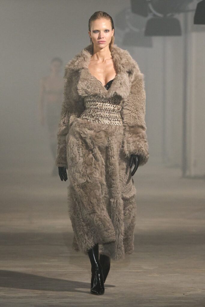La sfilata si è chiusa con un modello avvolto in un cappotto oversize svolazzante: un’immagine potente che ha consolidato il messaggio dell’intera collezione. Non si è trattato solo di moda, ma di un’affermazione netta: il futuro della donna nel potere non passa dalla repressione del desiderio, ma dalla sua rivendicazione.