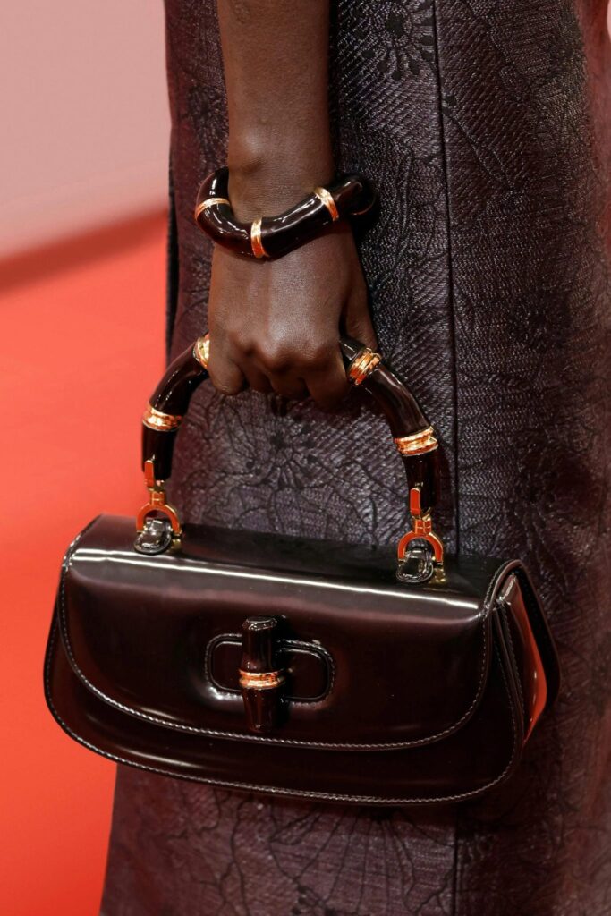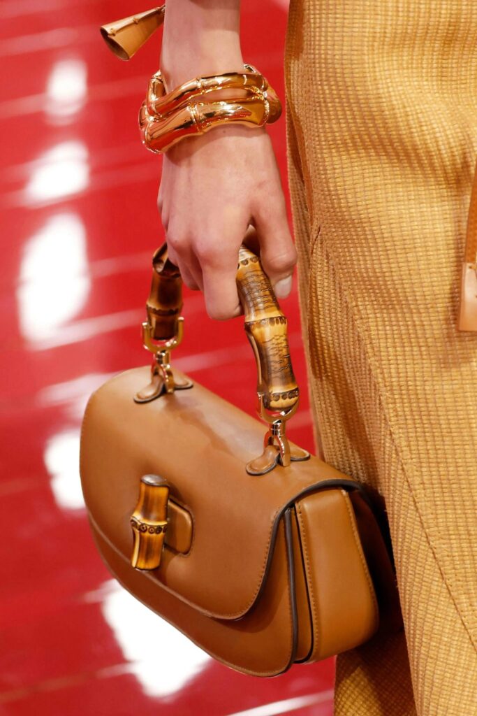 Per la primavera-estate 2025, Gucci presenta una linea di accessori che celebra la bellezza del bambù in tutte le sue forme. Orecchini, collane, bracciali e naturalmente le sue iconiche borse vengono reinventati con un design meticoloso che esalta la texture naturale e le curve fluide della pianta. Con strutture intrecciate e finiture ricercate, la collezione riesce a bilanciare l’essenza organica del materiale con una sofisticazione estrema, dando vita a un’estetica che fonde natura e artigianalità in perfetta armonia.