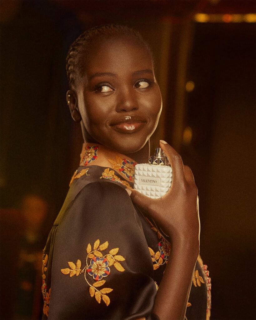 La campagna, firmata dalla fotografa Carlijn Jacobs e interpretata da Adut Akech, cattura l’essenza del glamour anni Settanta, coniugando la nostalgia di un’epoca all’estetica sofisticata di Valentino. Per quanto riguarda le fragranze, spiccano le note di fiore d’arancio, marshmallow e vaniglia nella versione femminile, mentre quella maschile gioca su bergamotto, lavandina e ambra, trovando un equilibrio tra freschezza e calore. I rossetti Spike Valentino Ivory completano la proposta con tre tonalità e finish luminosi.