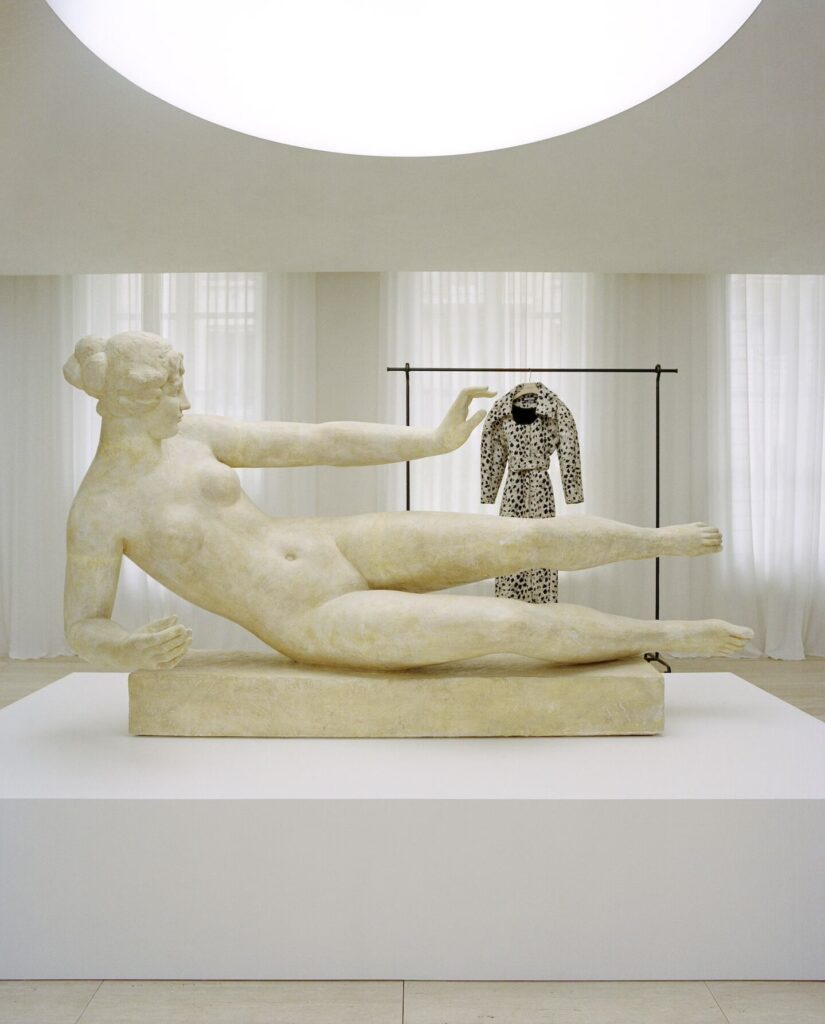 Imbevuto dell’estetica caratteristica del marchio, il luogo di lavoro presenta spettacolari opere d’arte di artisti come David Hockney, Wolfgang Tillmans, Joan Hoverstadt e Pierre Chareau, tutte selezionate dallo stesso Simon Porte Jacquemus. Visibile dall’esterno, la stella dell’esposizione è ‘L’Air (2e état), 1938-1939’, dello scultore e pittore francese Aristide Maillol. Nato negli anni 1860, Maillol è conosciuto per il suo lavoro nella creazione di statue potenti ed equilibrate del corpo femminile, diverse dalle sculture popolari del suo tempo. Altre opere dell’artista presenti includono i quadri ‘Nu féminin couché de dos Dina (1942)’, ‘Nu assis’ e ‘Nu debout’.