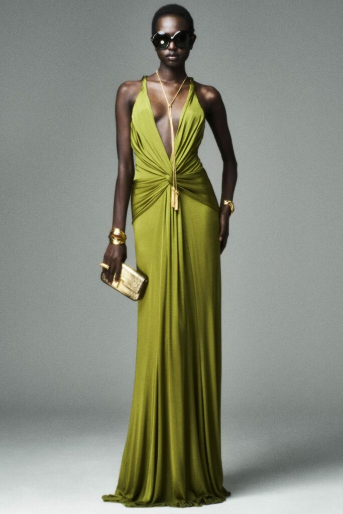 Questa nuova collezione è stata fotografata con l’intenzione di richiamare il lavoro squisito di Ford in Gucci. Si tratta di un omaggio, da una prospettiva diversa, a ciò che Ford ha costruito alcuni anni fa. La collezione presenta pezzi rivelatori, aderenti al corpo, realizzati con tessuti sofisticati che mantengono il fascino dell’eleganza. Allo stesso tempo, costruisce una narrativa diversa che esalta la propria eredità caratterizzata dagli eccessi e dall’escapismo. Hawkings ha continuato a esplorare la femminilità moderna con silhouette strutturate, tessuti di alta qualità e dettagli drammatici, e la Resort 25 ne è un ulteriore esempio.
