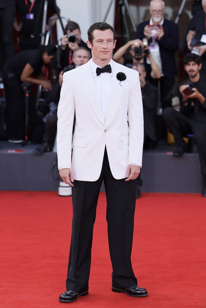 In prima linea Mia Goth, l’iconica attrice conosciuta per il ruolo di Pearl, ha scelto un sensuale abito marrone con strascico firmato Dior, abbinato ai sandali So Nude di Aquazzura e a una collana imponente di Tiffany & Co.. Al suo fianco, il coprotagonista di Frankenstein, Jacob Elordi, ha conquistato applausi con un impeccabile completo oversize su misura di Bottega Veneta e un classico papillon: semplicità trasformata in pura presenza scenica. Tra i più acclamati anche Callum Turner, con uno smoking contrastato di Louis Vuitton – pantaloni neri e giacca bianca – arricchito da un garofano all’occhiello e mocassini Oxford della stessa maison.