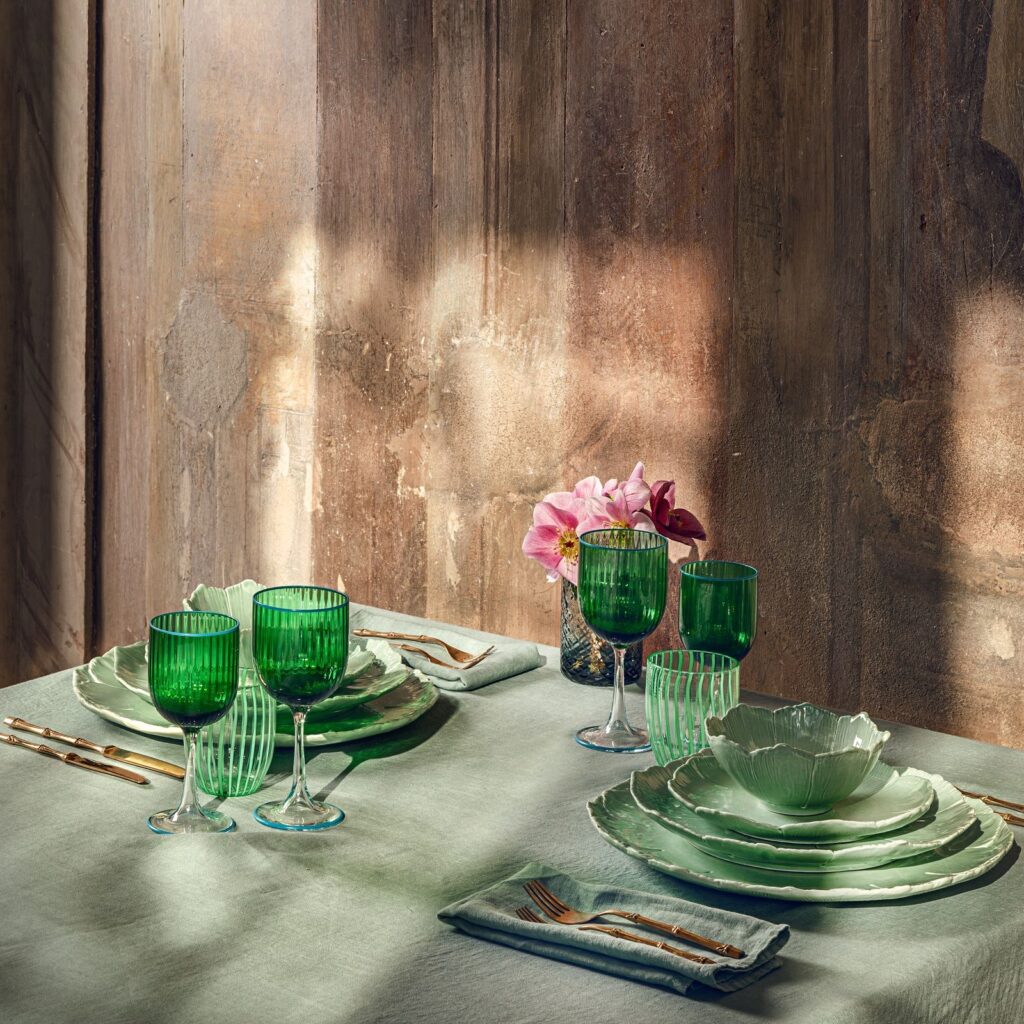 Prada, Gucci, Dolce & Gabbana, Hermès, Bottega Veneta, Loewe e Versace guidano questa rivoluzione domestica, presentando collezioni che spaziano da porcellane stampate a mobili di design, fino ad arrivare agli elettrodomestici. Gucci propone sedie laccate, candele botaniche e cuscini con monogramma; Dolce & Gabbana ha addirittura lanciato, in collaborazione con Smeg, una linea di frullatori e macchine da caffè in stile siciliano. Missoni estende il suo iconico zigzag ai tessili per la casa, mentre Bottega Veneta applica l’inconfondibile lavorazione intrecciata a vassoi e cuscini.