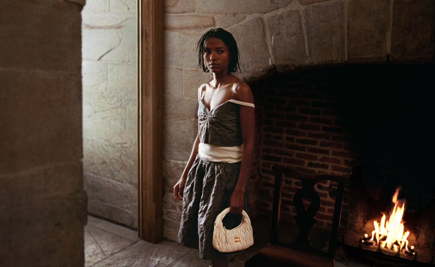 Con fotografie realizzate da Angela Hill in Super 8 e su pellicola analogica, la narrativa visiva costruisce un dialogo emotivo tra passato e presente: muri di mattoni consumati, pietre segnate dal tempo e un camino leggendario contrastano con la freschezza e la modernità delle protagoniste.