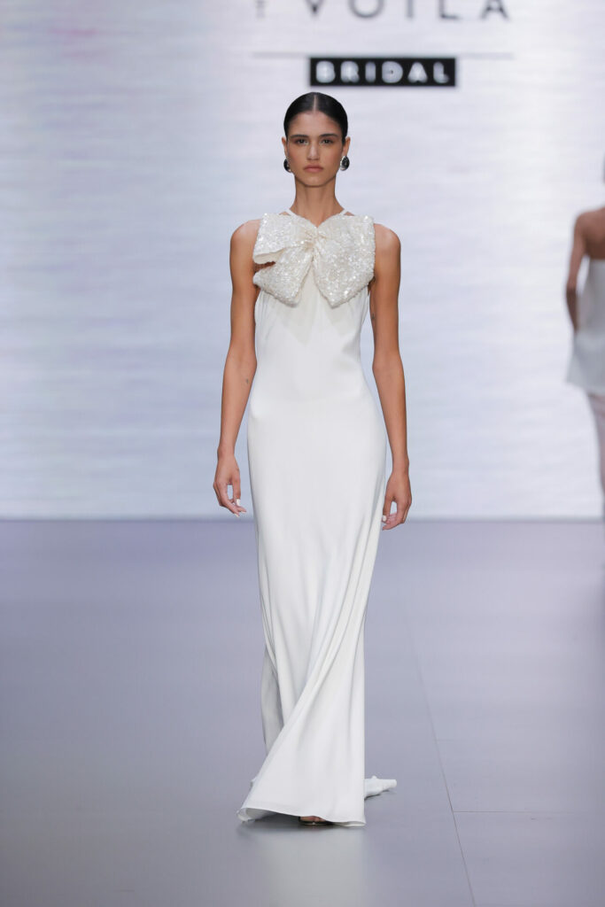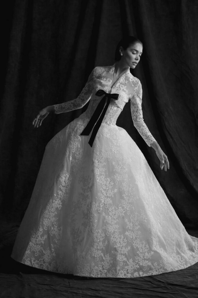 Le spose che cercano un tocco di sofisticazione troveranno nel nero il loro alleato. Marchi come Nadia Manjarrez Bridal, Alejandra Alonso Rojas Bridal e Louvienne x Scorcesa hanno incorporato dettagli in nero nelle loro collezioni, creando un elegante contrasto con il bianco o l’avorio dell’abito. Dai fiocchi alle cinture, fino ai guanti, questi tocchi sottili conferiscono un’aria di distinzione.